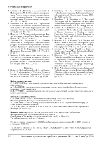 5. Бейсенова А.А., Муханова Ж.С. Образование и человеческий капитал: социально-философский аспект // Вестник Карагандинского университета. Серия “История. Философия”. 2024. Т. 115, № 3. С. 294-303. EDN: AWQGNI