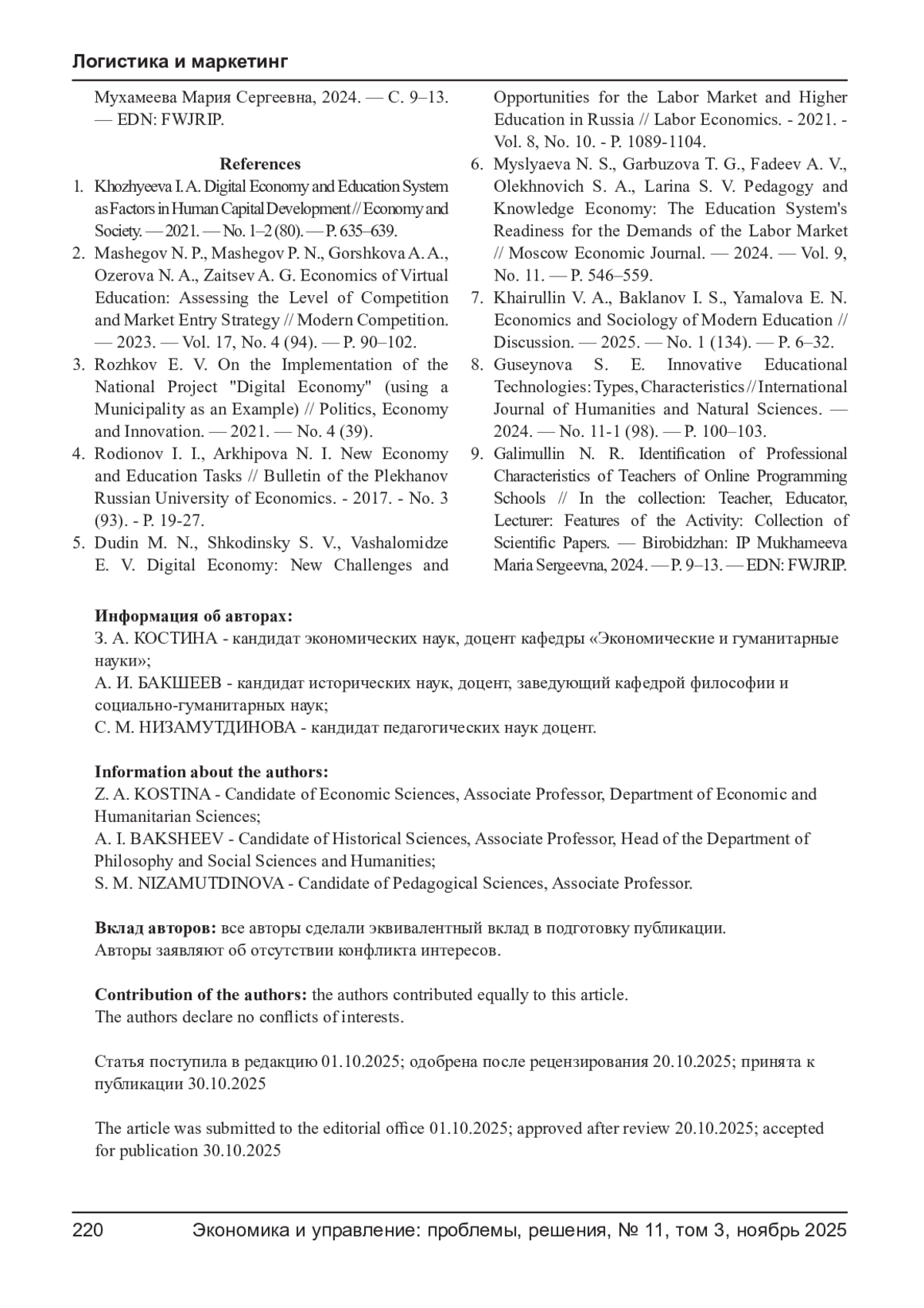 7. Хайруллин В. А., Бакланов И. С., Ямалова Э. Н. Экономика и социология современного образования // Дискуссия. - 2025. - № 1 (134). - С. 6-32. EDN: WQIGQC