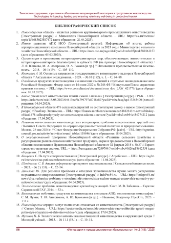 1. Новосибирская область - является регионом крупнотоварного промышленного животноводства [Электронный ресурс] // Минсельхоз Новосибирской области. - URL: https://ok.ru/mcxnso/topic/156683023587472 (дата обращения: 21.04.2025).