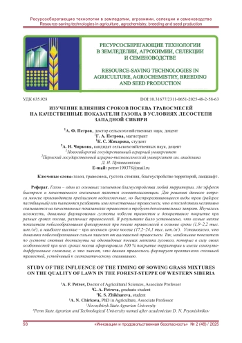 5. Серегин М. В. Качество газонного покрытия в зависимости от сроков посева при благоустройстве в среднем Предуралье // Пермский аграрный вестник. - 2019. - № 3 (27). - С. 69-74. -. EDN: HXGEBA
