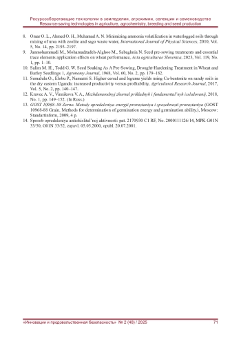 8. Omar O. L., Ahmed O. H., Muhamad A. N. Minimizing ammonia volatilization in waterlogged soils through mixing of urea with zeolite and sago waste water // International Journal of Physical Sciences. - 2010. - Vol. 5, No. 14. - С. 2193-2197.