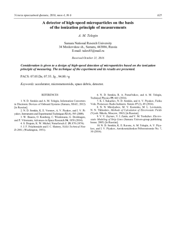 A. M. Telegin A detector of high-speed microparticles on the basis of the ionization principle of measurements 618