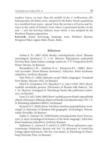 8. Кузьмин Д. В. Словарь карельской народной географической терминологии. Петрозаводск: Периодика, 2020. EDN: XWDDMH