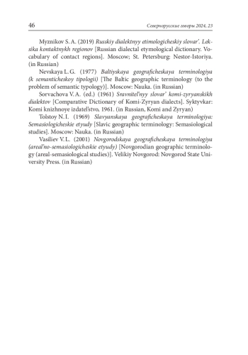 1. Васильев В. Л. (2001) Новгородская географическая терминология (ареально-семасиологические этюды). Великий Новгород: Новгородский гос. ун-т.