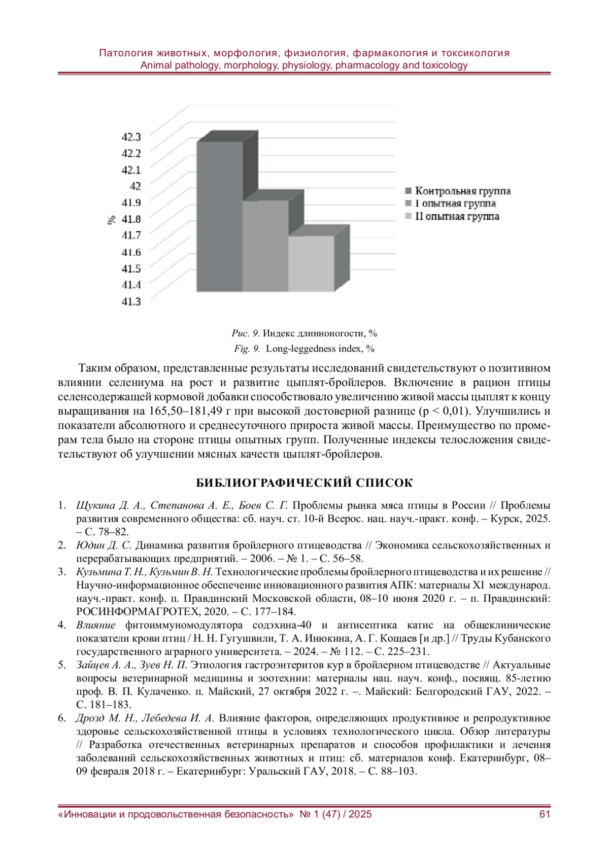1. Щукина Д. А., Степанова А. Е., Боев С. Г. Проблемы рынка мяса птицы в России // Проблемы развития современного общества: сб. науч. ст. 10-й Всерос. нац. науч.-практ. конф. - Курск, 2025. - С. 78-82. EDN: EVRFBV