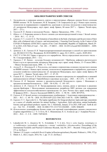 10. Гапонов Н. В. Значение люпина в продовольственной безопасности страны // Инновации и продовольственная безопасность. - 2020. - № 4 (30). - С. 101-107. EDN: MEIAUL