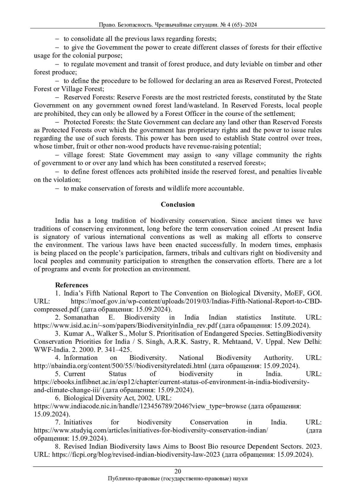 6. Biological Diversity Act, 2002. URL: https://www.indiacode.nic.in/handle/123456789/2046?view_type=browse (дата обращения: 15.09.2024).