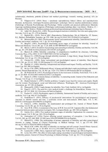 24. Daniluk J.C. Infertility: Intrapersonal and interpersonal impact / J.C. Daniluk // Fertility and Sterility. - 1988. - Vol.49, Issue 6. - pp. 982-990.