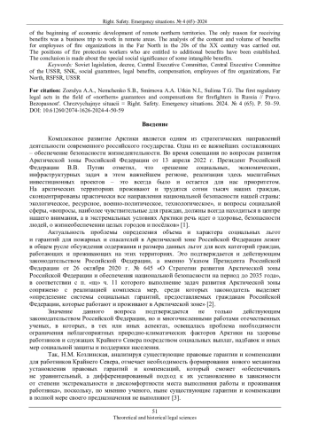 Рассмотрены первые советские нормативные правовые акты в сфере «северных» гарантий и компенсаций для работников пожарных организаций. Отмечается, что впервые социальные льготы для работников пожарных организаций Крайнего Севера были установлены в 1923 г., в эпоху начала экономического освоения отдаленных северных территорий. Единственным основанием для получения льгот была командировка на работу в отдаленные местности. Проведен анализ содержания и объема льгот для работников пожарных организаций на Крайнем Севере в 20-е гг. XX в. Установлены должности работников пожарной охраны, имеющие право на дополнительные льготы. Сделан вывод об особой социальной значимости некоторых нематериальных льгот.