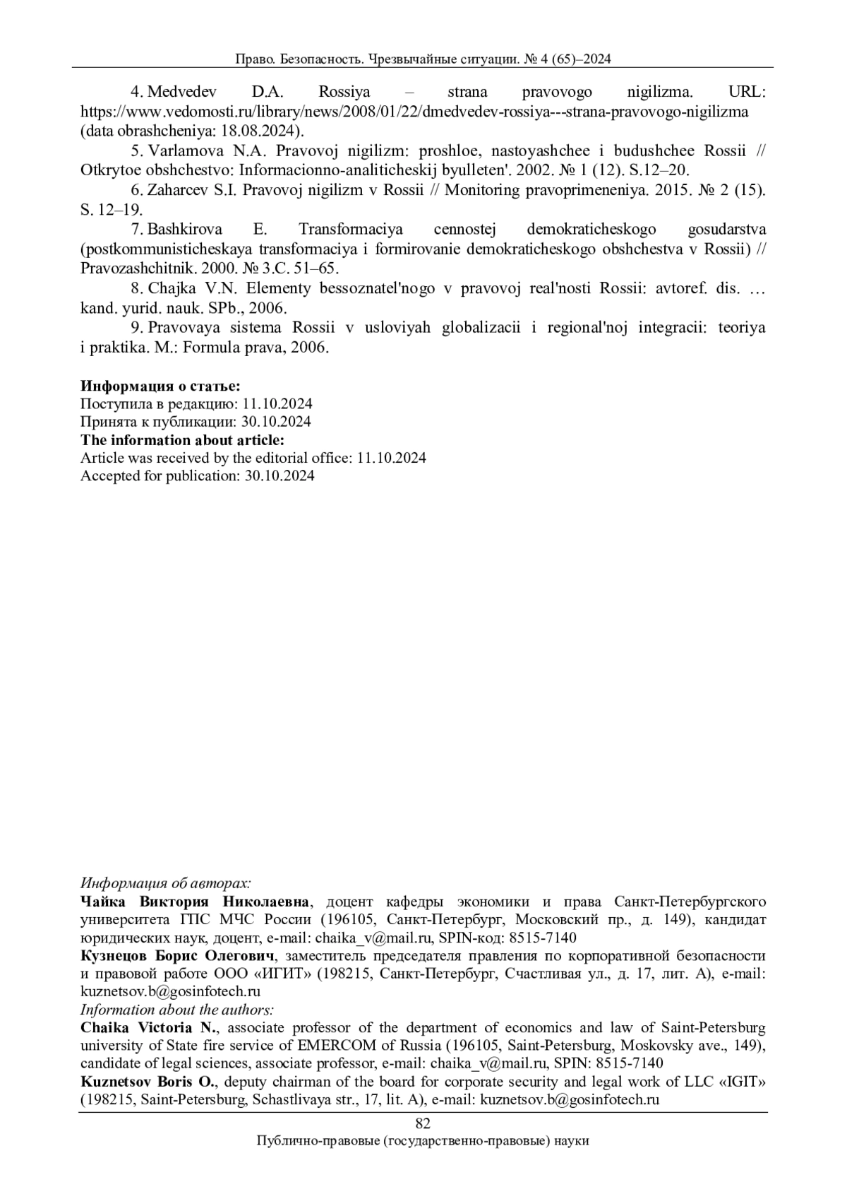 4. Медведев Д.А. Россия - страна правового нигилизма. URL: https://www.vedomosti.ru/library/news/2008/01/22/dmedvedev-rossiya-strana-pravovogo-nigilizma (дата обращения: 18.08.2024).