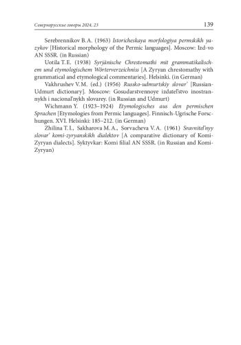 12. Серебренников Б. А. (1963) Историческая морфология пермских языков. М.: Изд-во АН СССР.