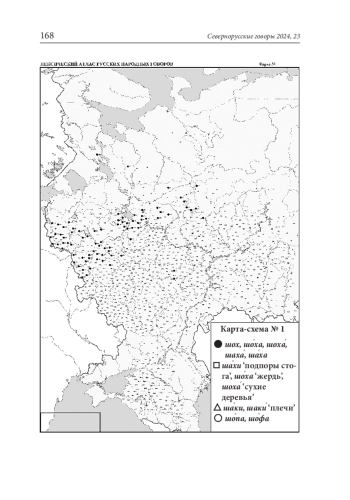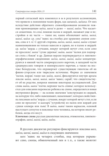 Статья посвящена этимологии русских диалектных лексем шох, шо́ха, шоха́, шаха́, ша́ха ‘навес; сарай; столб; укладка соломы, льна’, ша́хи, шахи́ ‘палки для подпорки стога с боков’, ‘колья с развилкой на конце, служащие в основном для сушки невода’, ‘шесты для установки рыболовных сетей’ и ша́ки, шаки́ ‘плечи; верхняя часть спины’. В них выделяется корень шох-/шах-/шак-, который восходит к основе сох- в лексеме соха́ ‘палка, жердь; подпорка’. Предполагается, что в дериватах последней (сошни́к, со́шка) первый согласный звук изменился в ш в результате ассимиляции, что привело к появлению таких форм, как шошни́к, шо́шка. От них вследствие действия обратного словообразования возникли ложные производящие шо́ха, шоха́ и далее — шаха́, ша́ха. Что касается семантики, то соха́, помимо палок и жердей, называет еще и постройки и их части — такие же, какие обозначают шо́ха, шоха́, шаха́, ша́ха: ср. соха́ ‘навес на столбах для хранения снопов соломы, сена и т. п.’. С другой стороны, шо́ха, шоха́, шаха́, ша́ха служат наименованиями не только навесов и сараев, но и палок и жердей: ср. шо́ха ‘жердь с сучками, вокруг которой мечут стог, если сено не просохло’, шоха́ ‘сухие деревья’, ша́хи, шахи́ ‘палки для подпорки стога с боков’ и др. Данная версия подтверждается и лингвогеографическими сведениями: шо́ха, шоха́, шаха́, ша́ха концентрируются в южной части севернорусского наречия, в западной части среднерусских говоров и южнорусского наречия, а также на востоке Белоруссии, что опровергает существующие гипотезы об их финно-угорском или тюркском источнике. Формы со значением ‘палки, жерди’, такие как ша́хи, шахи́, фиксируются внутри ареала лексем шо́ха, шоха́, шаха́, ша́ха ‘навес; сарай’, что свидетельствует об их родстве, вопреки мнению некоторых исследователей. Для слова ша́ки, шаки́ ‘плечи; верхняя часть спины’, которое используется для описания переноски ребенка на спине, определяется новая внутренняя форма — на основе значения ‘конструкция из жердей, на которую что-либо навешивают, наваливают’, которая свойственна лексемам шо́ха ‘жердь с сучками, вокруг которой мечут стог, если сено не просохло’ и шахыри́ ‘устройство из палок или жердей для сушки клевера или льна’. В ша́ки, шаки́ таким каркасом, основой выступает согнутое в пояснице тело человека, на котором висит ребенок, когда его несут.