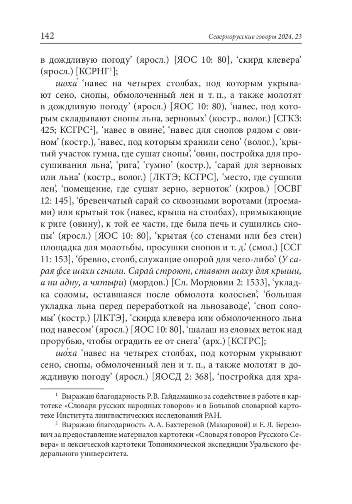 2. Шалаева Т. В. (2021) К этимологии лексики севернорусских говоров. Севернорусские говоры, 20: 123-142.