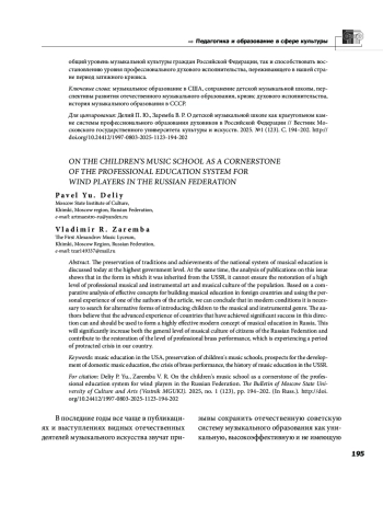 О сохранении традиций и достижений отечественной системы музыкального образования говорят сегодня на самом высоком правительственном уровне. В то же время анализ публикаций по данной проблематике показывает, что в том виде, в каком она досталась нам в наследство от СССР, не может обеспечить восстановление высокого уровня профессионального музыкально инструментального искусства и музыкальной культуры населения. На основе сопоставительного анализа эффективных концепций построения музыкального образования в зарубежных странах и используя личный опыт одного из авторов статьи, можно сделать вывод о том, что в современных условиях необходим поиск альтернативных форм приобщения детей к музыкально инструментальному жанру. Авторы полагают, что передовой опыт стран, добившихся значительных успехов на этом пути, может и должен быть использован для формирования высокоэффективной современной концепции музыкального образования в России. Это позволит существенно повысить как общий уровень музыкальной культуры граждан Российской Федерации, так и способствовать восстановлению уровня профессионального духового исполнительства, переживающего в нашей стране период затяжного кризиса.