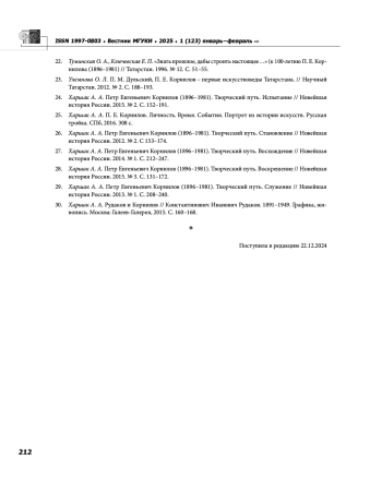 23. Улемнова О. Л. П. М. Дульский, П. Е. Корнилов - первые искусствоведы Татарстана. // Научный Татарстан. 2012. № 2. С. 188-193. EDN: RVNYVX