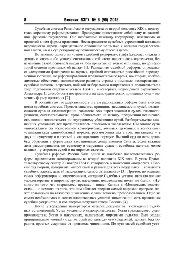 5. Кобликов А. Судебные реформы в России // Законность. 1998. № 3. С. 51-53.