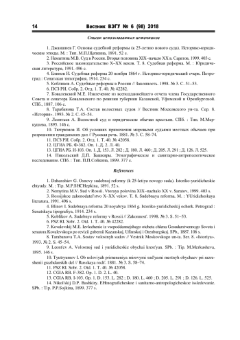 10. Тютрюмов И. Об условиях применения мировыми судьями местных обычаев при разрешении гражданских дел // Русская речь. 1881. № 3. С. 58-74.