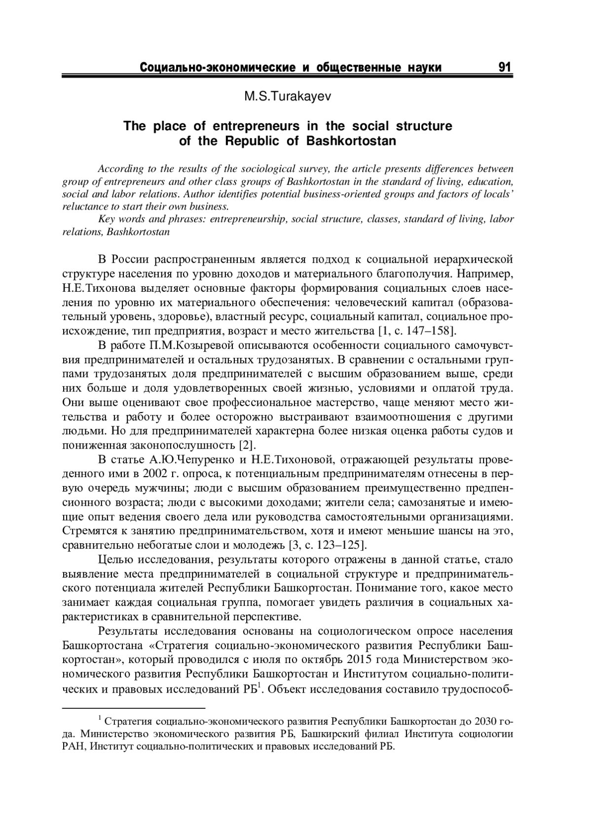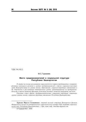 В статье на основе результатов социологического опроса представлены и охарактеризованы имеющиеся различия в группах предпринимателей и других социально-классовых групп Башкортостана по уровню жизни, образованию, социально-трудовым отношениям и др. Определены и рассмотрены потенциальные группы, ориентированные на предпринимательств, а также выявлены факторы нежелания местных жителей открывать свое дело