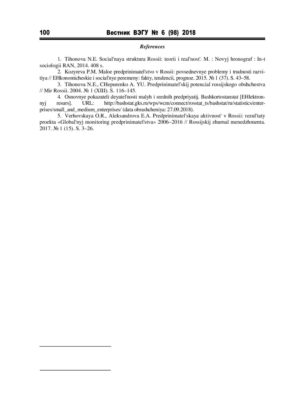 3. Тихонова Н.Е., Чепуренко А. Ю. Предпринимательский потенциал российского общества//Мир России. 2004. № 1 (XIII). С. 116-145. EDN: ZKTDFV