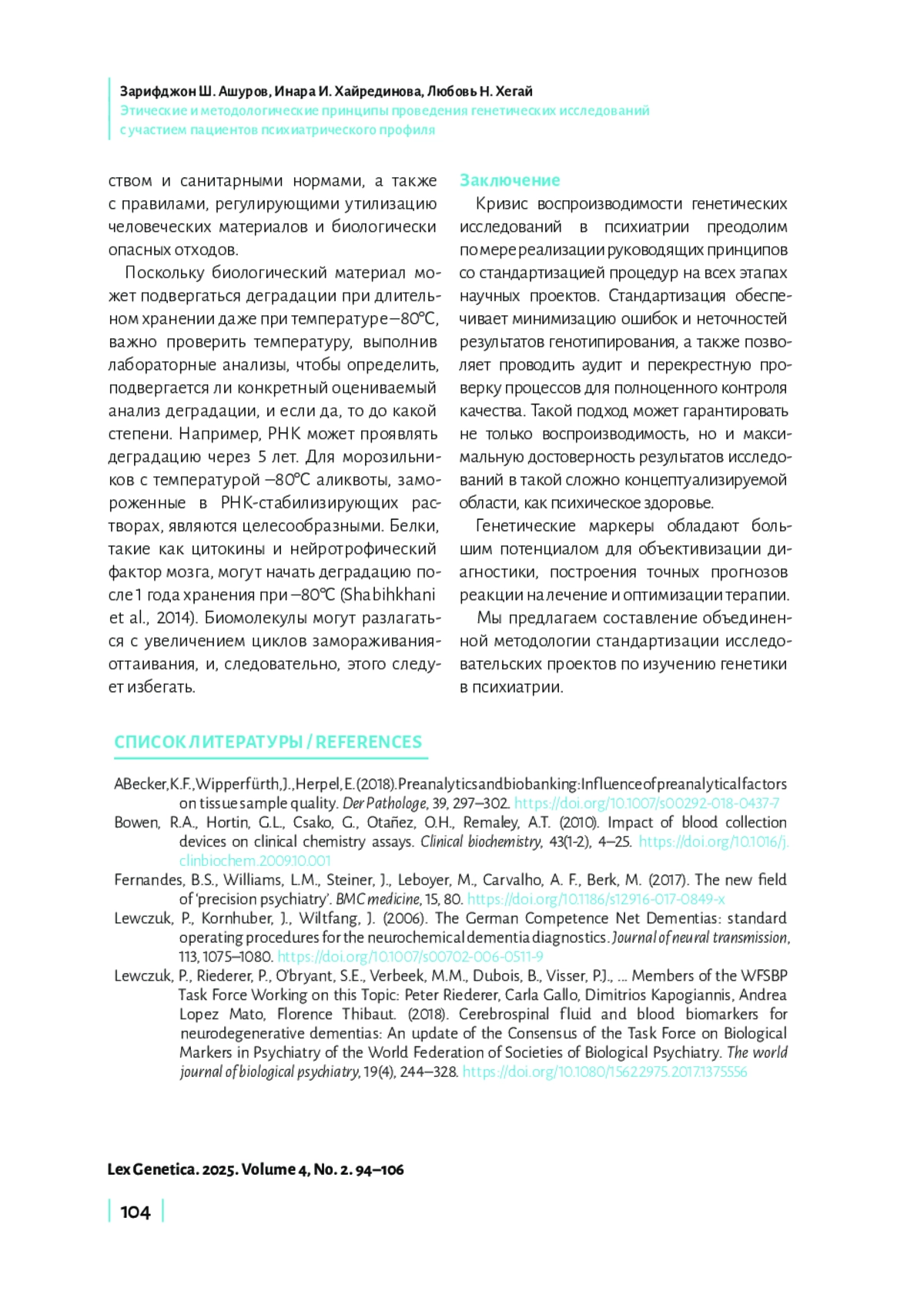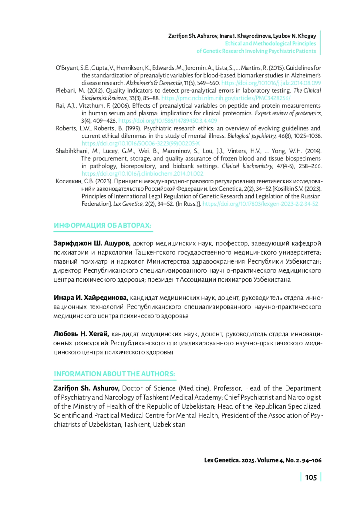 11. Косилкин, С.В. (2023). Принципы международно-правового регулирования генетических исследований и законодательство Российской Федерации. Lex Genetica, 2(2), 34-52 https://doi.org/10.17803/lexgen-2023-2-2-34-52