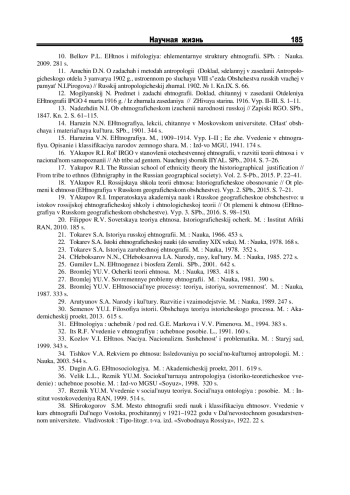 17. Yakupov R.I. The Russian school of ethnicity theory the historiographical justification // From tribe to ethnos (Ethnigraphy in the Russian geographical society). Vol. 2. S-Pb., 2015. P. 22-41.