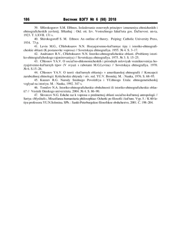 39. Широкогоров С.М. Этнос. Исследование основных принципов изменения этнических и этнографических явлений. Шанхай: Отд. отт. Изв. Восточного факультета гос. Дальневост. ун-та, 1923. Т. LXVII. 131 с.