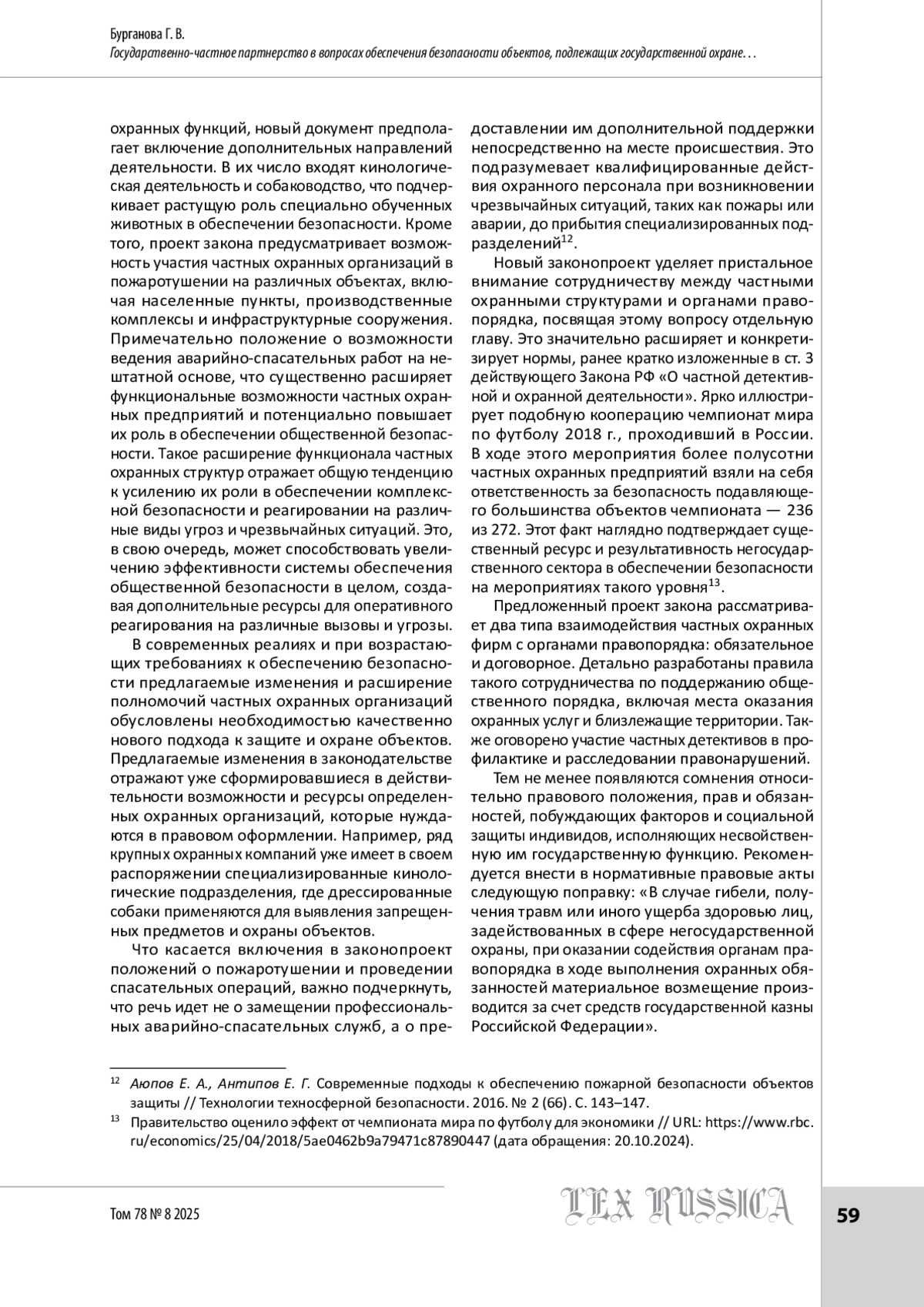 2. Батуров Т. М. Частные охранные организации в Российской Федерации: понятие, правовая основа и проблемы // Ученые записки. 2021. № 1 (37). С. 100-105.
