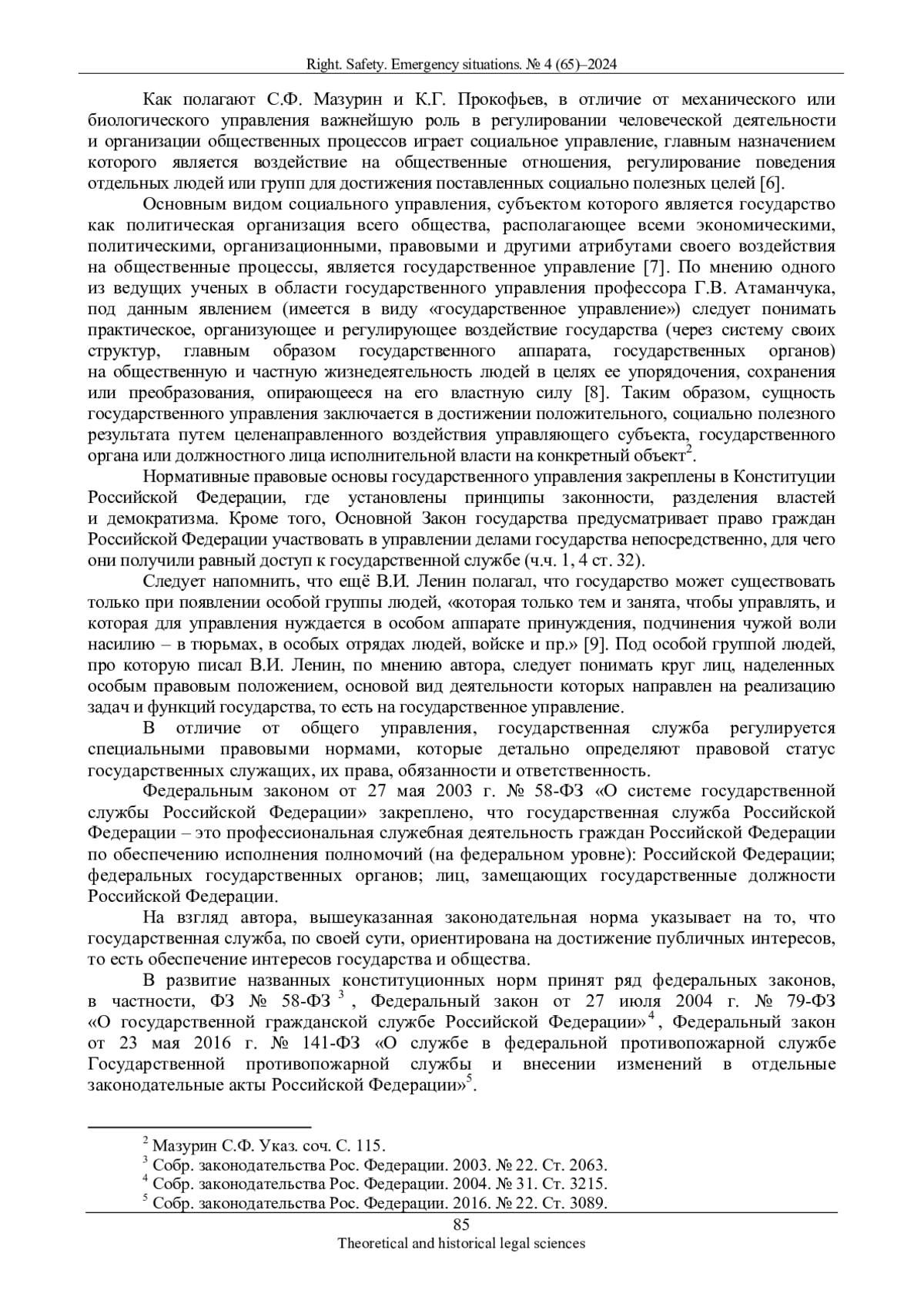 6. Мазурин С.Ф., Прокофьев К.Г. Социальное управление и административно-правовая деятельность. Лекция // Мир политики и социологии. 2018. № 1. С. 113-122. EDN: SRLAXH
