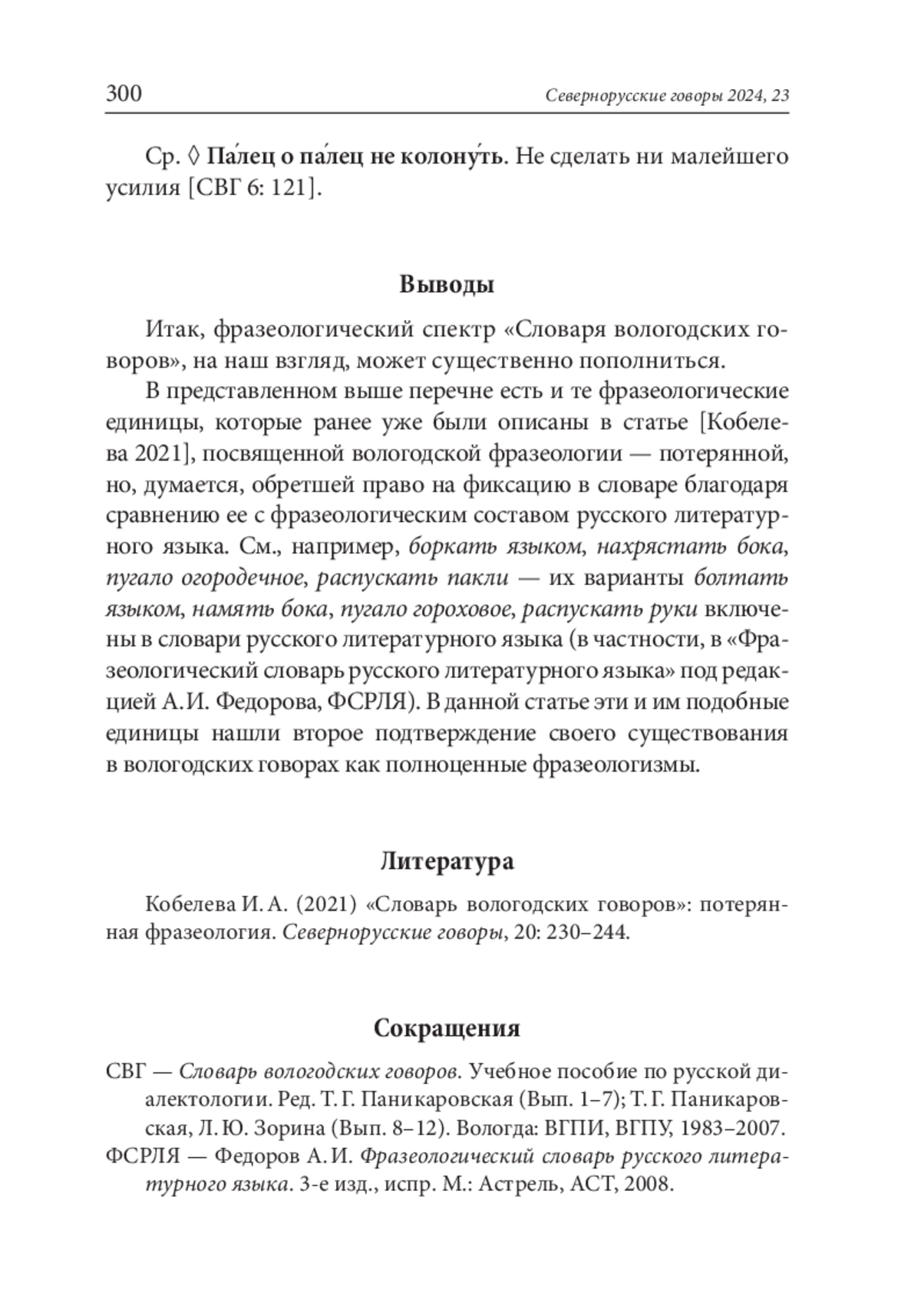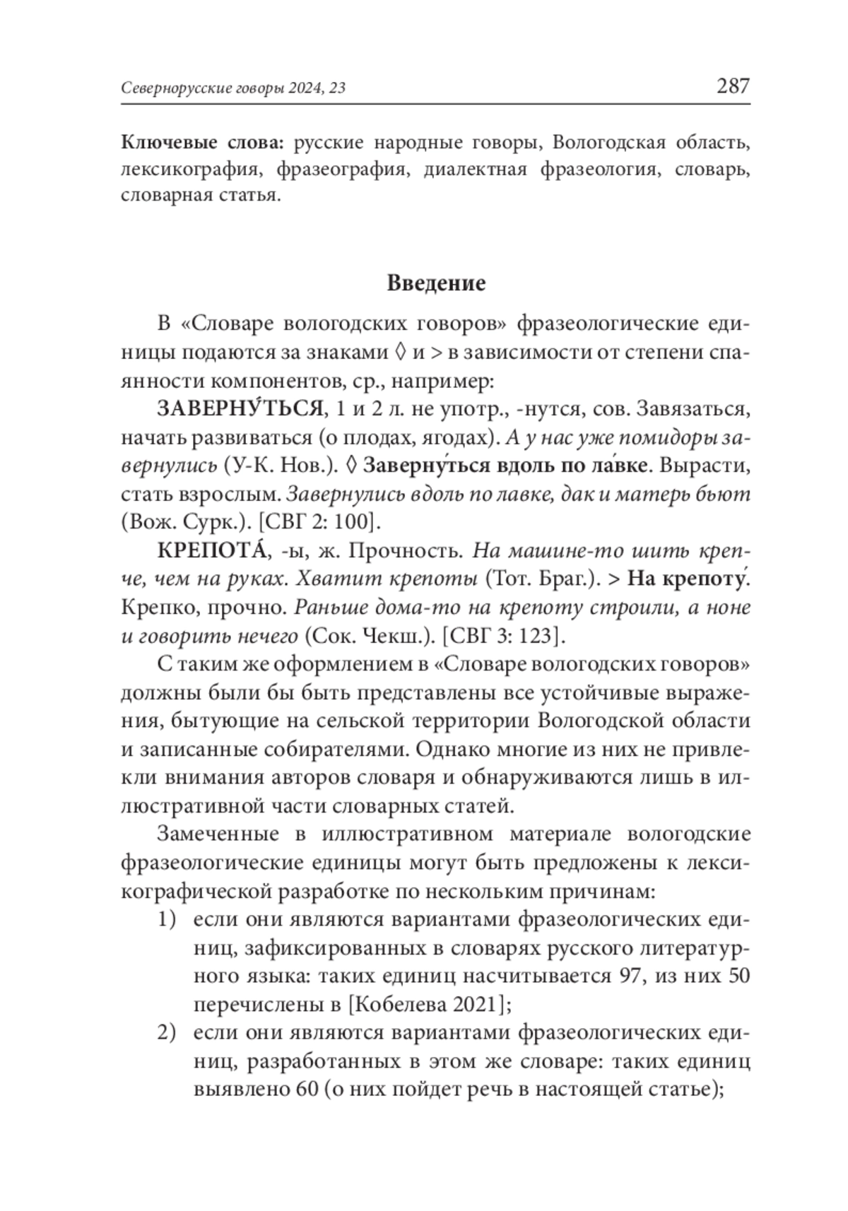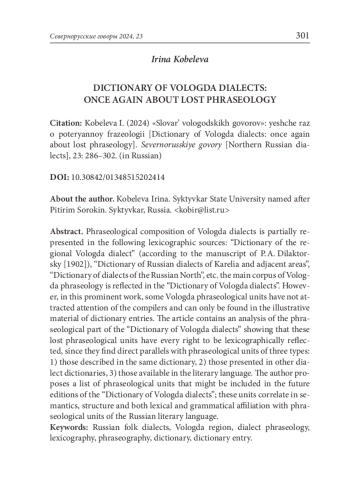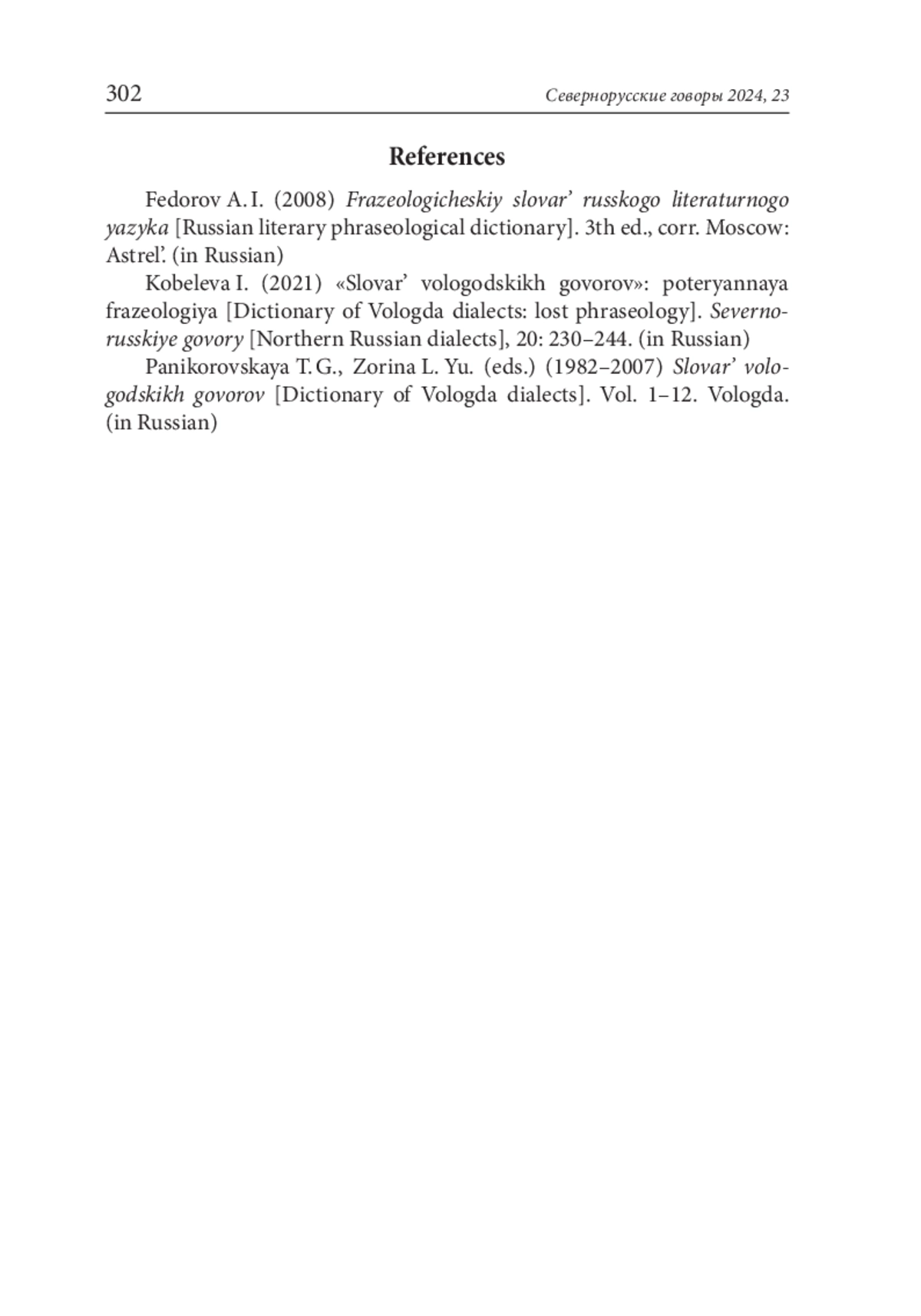 Статья представляет собой анализ фразеологической части словника «Словаря вологодских говоров» с целью продемонстрировать, что некоторые вологодские фразеологизмы не привлекли внимания составителей словаря, но могут быть обнаружены в иллюстративном материале словарных статей. Эти потерянные фразеологизмы имеют полное право на лексикографическое отражение, поскольку они находят прямые параллели с фразеологическими единицами: 1) имеющимися в литературном языке, 2) разработанными в этом же словаре, 3) представленными в других диалектных словарях. Предлагается перечень вологодских фразеологизмов для потенциального расширения словника «Словаря вологодских говоров».