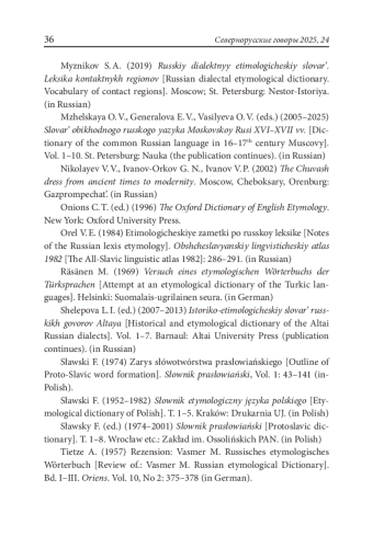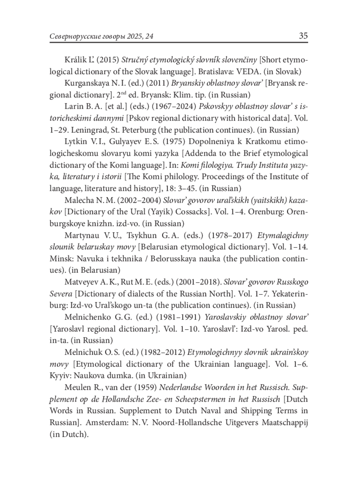 21. Мызников С. А. Русский диалектный этимологический словарь. Лексика контактных регионов. М.; СПб.: НесторИстория, 2019.