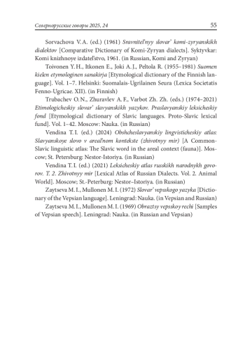 4. Мызников С. А. (2021) Русские говоры Беломорья в контексте этноязыкового взаимодействия: опыт комплексного исследования. М.; СПб.: Нестор-История.
