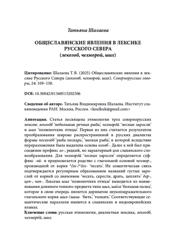 7. Шалаева Т. В. (2023) Ихтионим пескозоб и его фонетические варианты на карте. // Cевернорусские говоры, 22: 171-191.