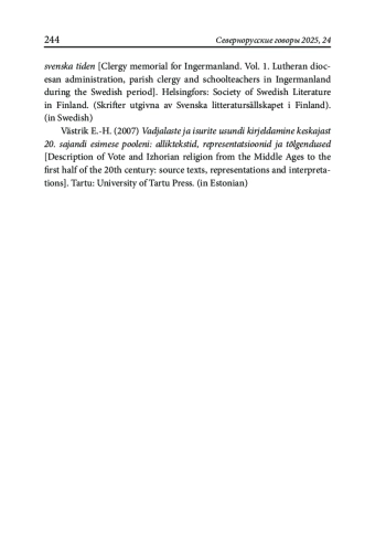 9. Västrik E.-H. (2007) Vadjalaste ja isurite usundi kirjeldamine keskajast 20. sajandi esimese pooleni: alliktekstid, representatsioonid ja tõlgendused. Tartu: Tartu Ülikooli Kirjastus. (Dissertationes folkloristicae Universitatis Tartuensis; 9).