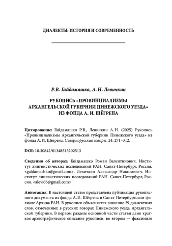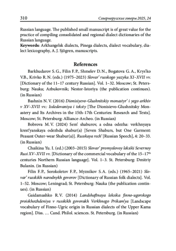 22. Левичкин А. Н., Мызников С. А. Словарь пинежских говоров: Проект. Пробные словарные статьи. СПб.: Нестор-История, 2014.