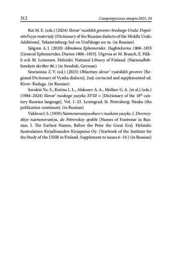 17. Словарь говоров Русского Севера. Дополнительные материалы: А-М. Гл. ред. М. Э. Рут. Екатеринбург: Изд-во Урал. ун-та, 2024.
