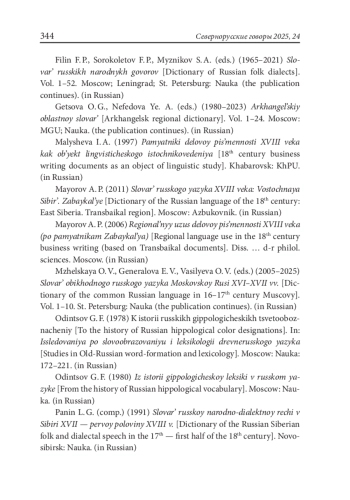 2. Майоров А. П. (2006) Региональный узус деловой письменности XVIII века (по памятникам Забайкалья). Дис. … д-ра филол. наук. М.