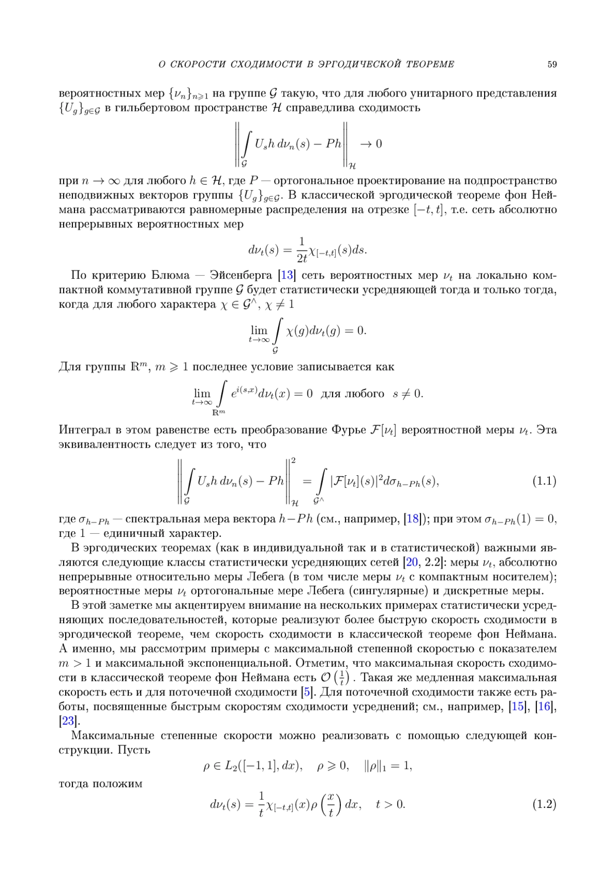 Пусть ℋ — гильбертово пространство, на котором действует группа R унитарными преобразованиями
