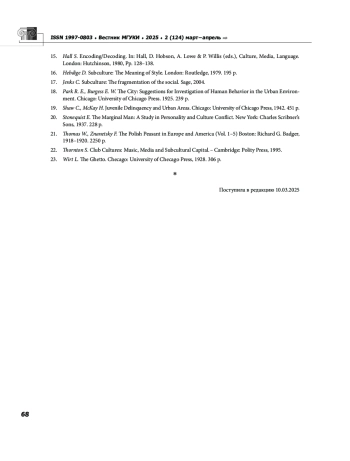 16. Hebdige D. Subculture: The Meaning of Style. London: Routledge, 1979. 195 p.