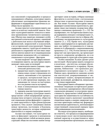 1. Ассман Я. Культурная память: Письмо, память о прошлом и политическая идентичность в ранних цивилизациях. Москва: Языки славянской культуры, 2004. 384 с.