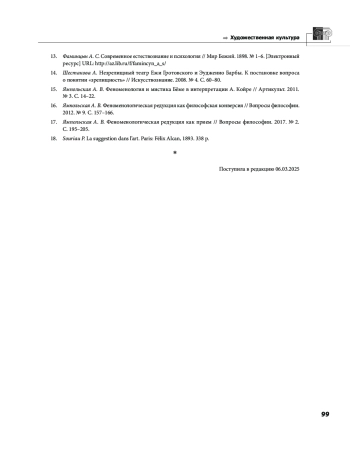17. Ямпольская А. В. Феноменологическая редукция как прием // Вопросы философии. 2017. № 2. С. 195-205. EDN: YFIEDP