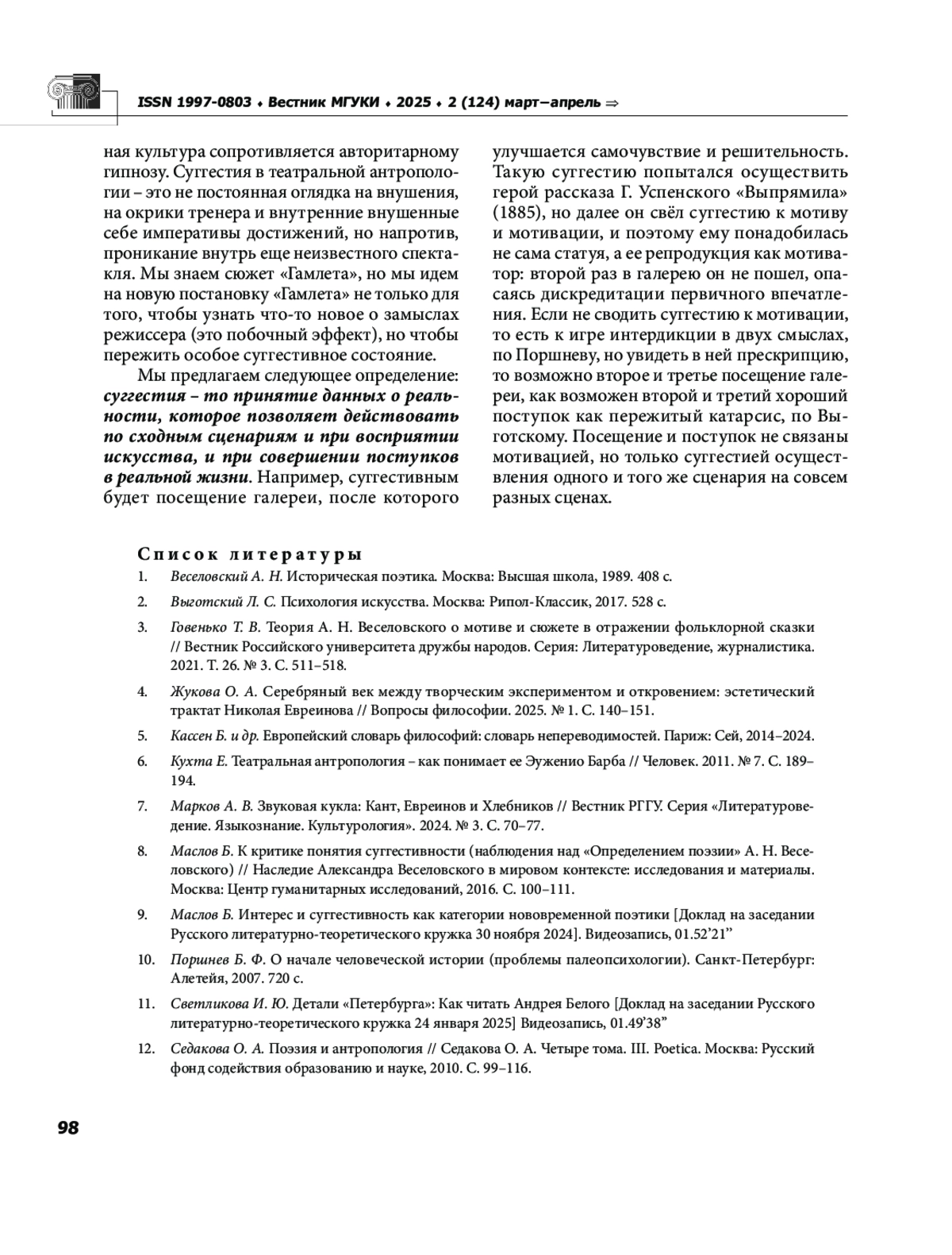 8. Маслов Б. К критике понятия суггестивности (наблюдения над “Определением поэзии” А. Н. Веселовского) // Наследие Александра Веселовского в мировом контексте: исследования и материалы. Москва: Центр гуманитарных исследований, 2016. С. 100-111.