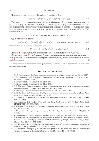 5. Е.Н. Махрова. Гомоклинические точки и топологическая энтропия непрерывного отображения дендрита // Соврем. мат. прилож. 54, 79-86 (2008).