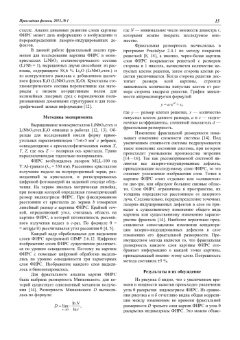 D. V. Manukovskaya, N. V. Sidorov, М. N. Palatnikov, and А. V. Syuy Use of the fractal analysis for research of photoinduced light scattering pictures in lithium niobate crystals 14