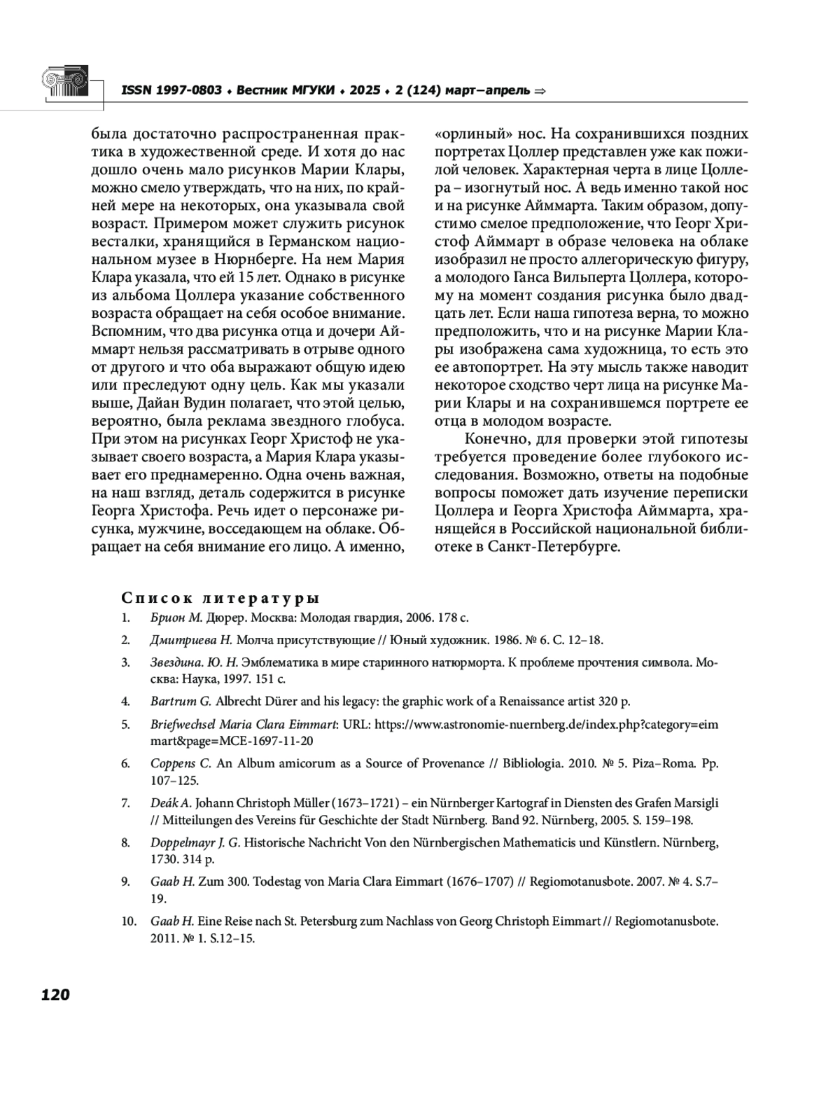 10. Gaab H. Eine Reise nach St. Petersburg zum Nachlass von Georg Christoph Eimmart // Regiomotanusbote. 2011. № 1. S.12-15.