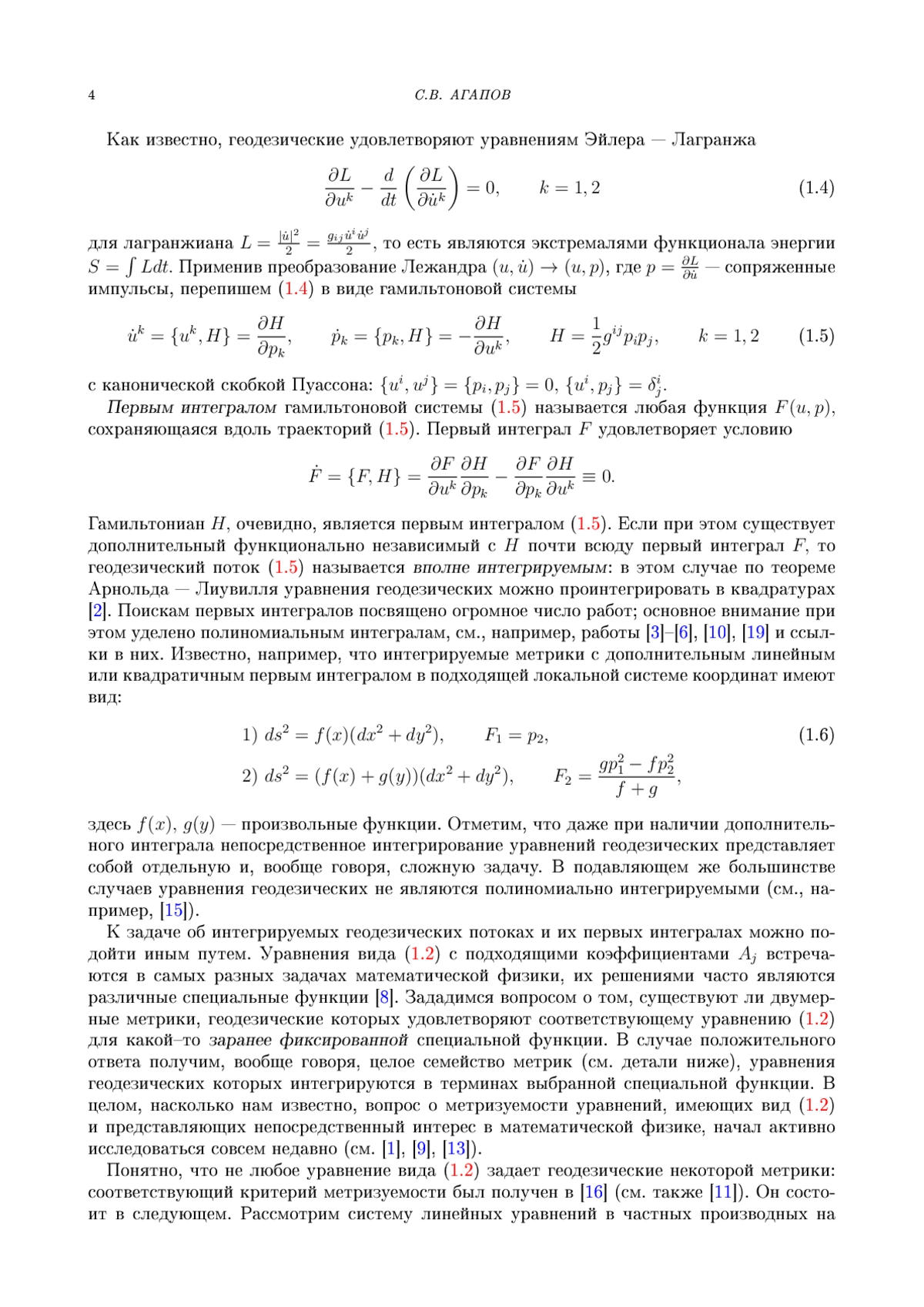 6. В.Н. Колокольцов. Геодезические потоки на двумерных многообразиях с дополнительным полиномиальным по скоростям первым интегралом // Изв. Акад. Наук СССР., Сер. мат. 46:5, 994-1010 (1982).