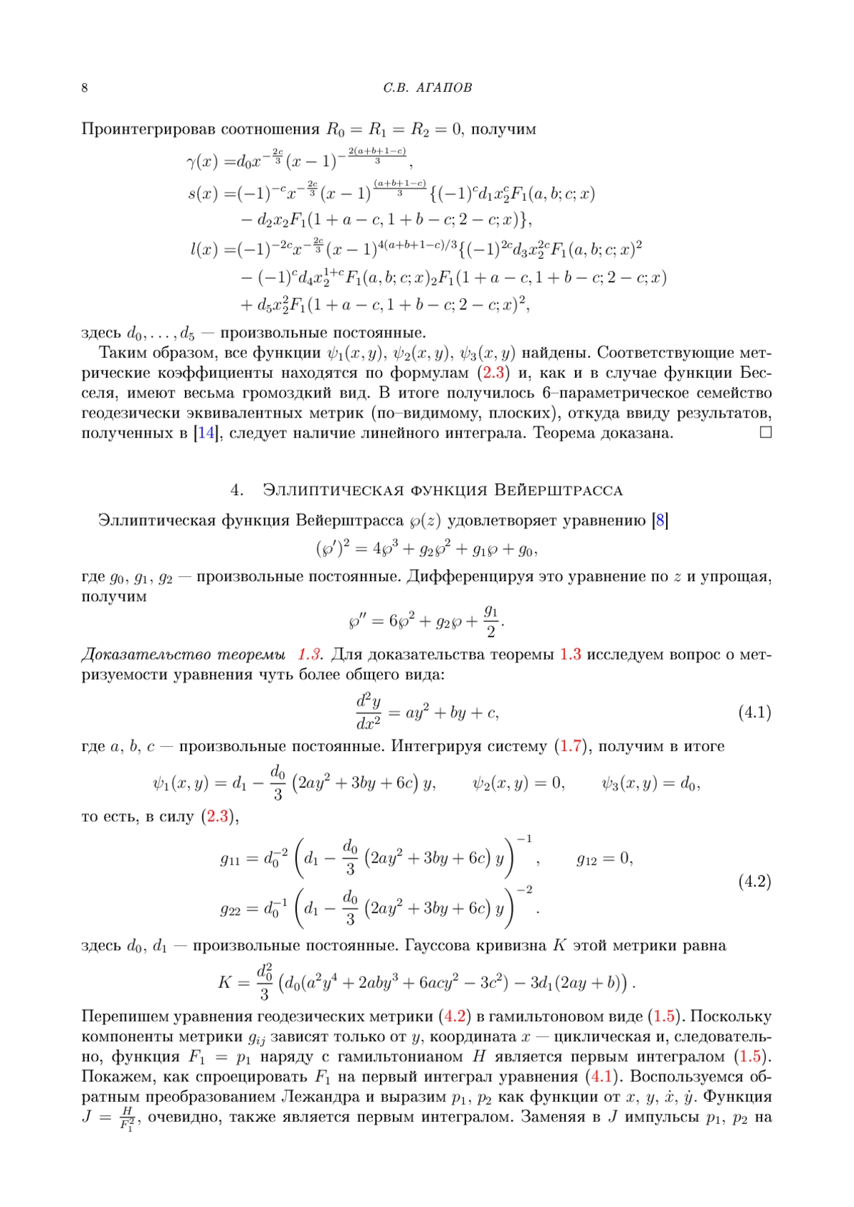 1. С.В. Агапов, А.Е. Миронов. Конечнозонные потенциалы и интегрируемые уравнения геодезических на двумерной поверхности // Тр. Мат. Инст. Стеклова 327, 7-17 (2024).