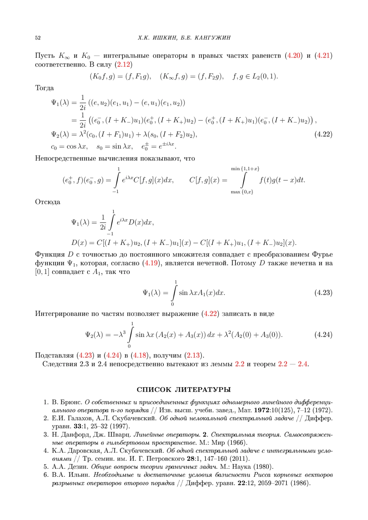 6. В.А. Ильин. Необходимые и достаточные условия базисности Рисса корневых векторов разрывных операторов второго порядка // Диффер. уравн. 22:12, 2059-2071 (1986).