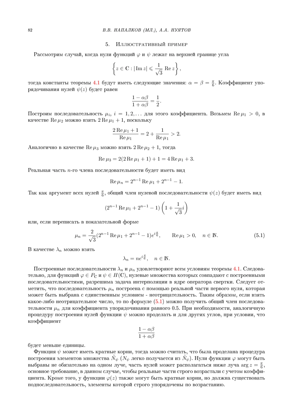 6. В.В. Напалков, А.А. Нуятов. Многоточечная задача Валле Пуссена для операторов свертки с узлами, заданными в угле // Теор. мат. физ. 180:2, 264-271 (2014).