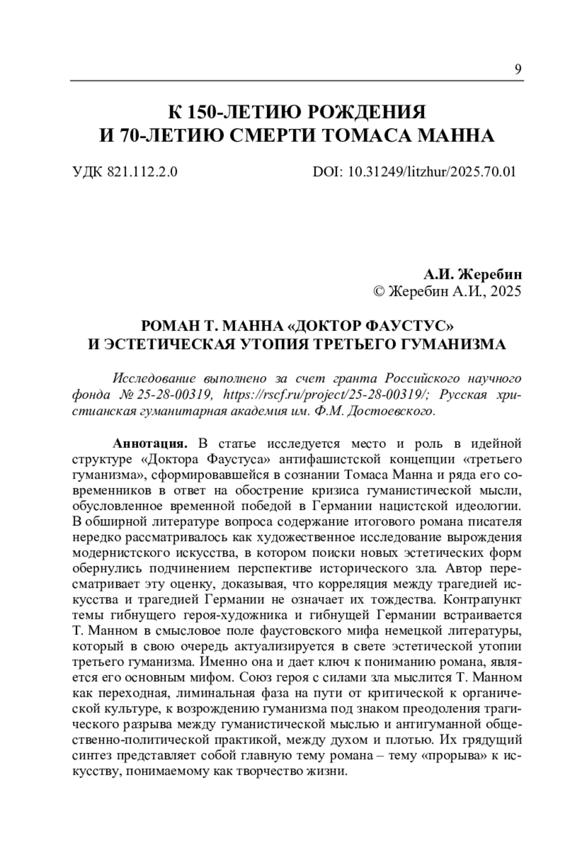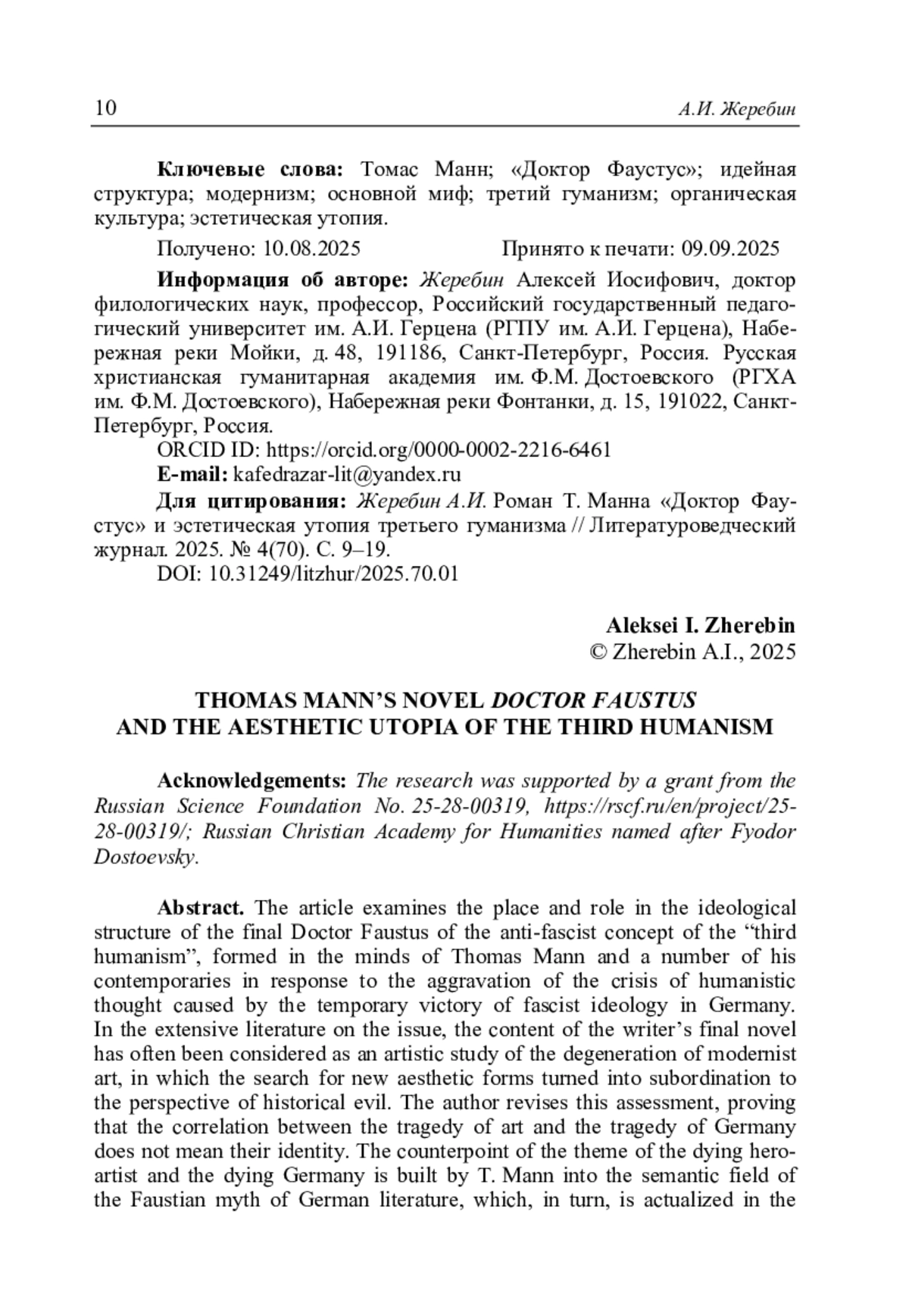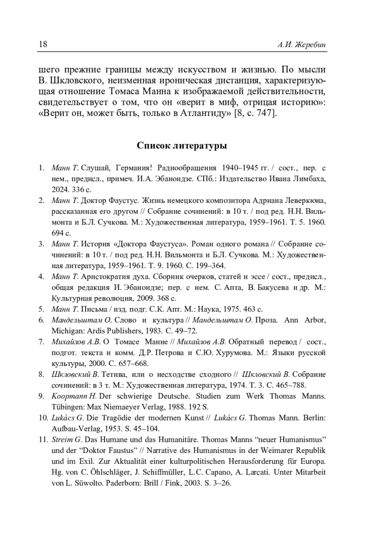 Жеребин А.И. Роман Т. Манна «Доктор Фау-