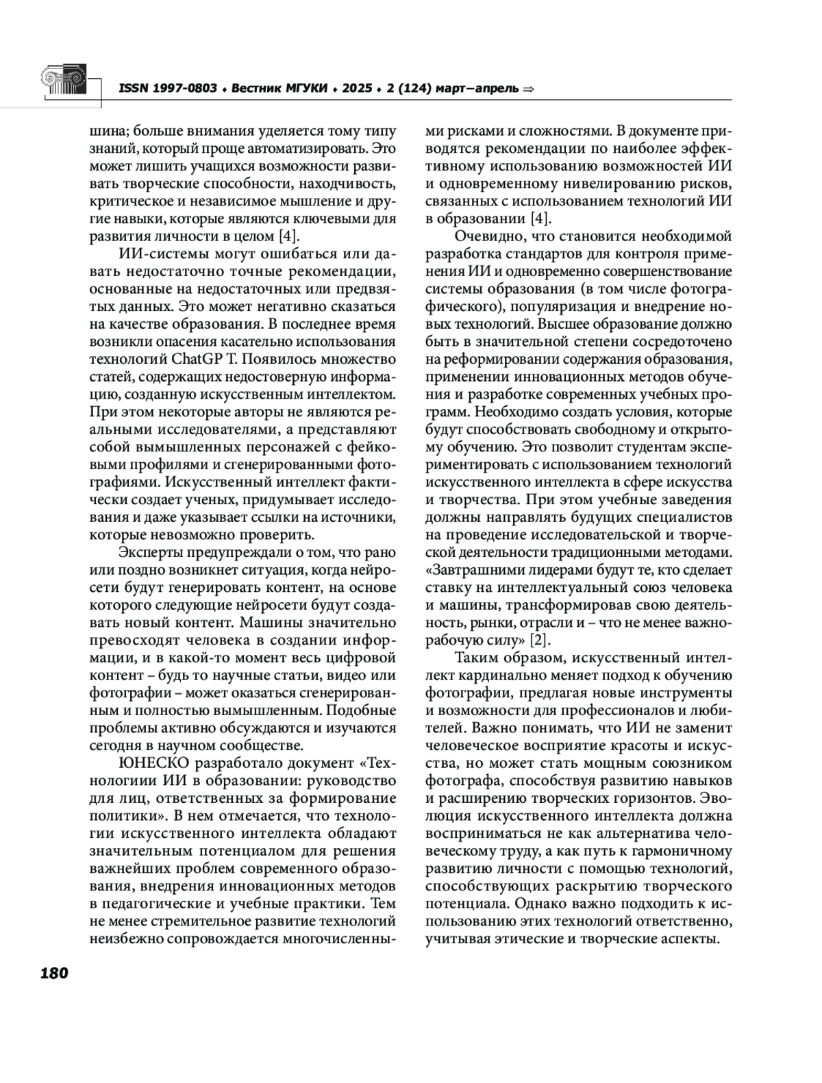 3. Лукашкин С. Искусственный интеллект в образовании еще не раскрыл свой потенциал. Экспертное заключение подготовлено по итогам сессии ПМЭФ-2023 “ИИ в высшем образовании прорыв или деградация?” [Электронный ресурс]URL:https://roscongress.org/materials/iskusstvennyy-intellekt-v-obrazovanii-eshche-ne-raskryl-svoy-potentsial.